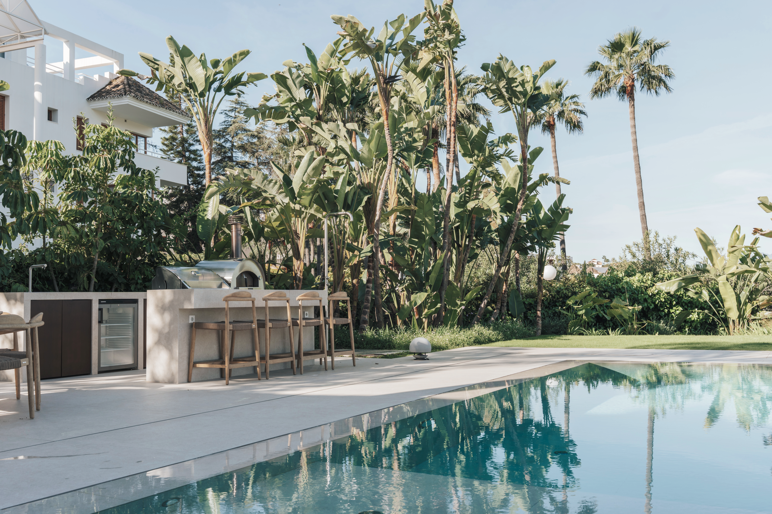 Cocinas al aire libreLa barbacoa se trata quizás de un elemento más familiar para la mayoría, pero también varía mucho en tamaño, forma y coste. Pueden venir en forma de acero, aluminio, en cuyo caso a menudo son móviles o se pueden instalar en cocinas modernas al aire libre, o construidas. Hoy la gama de funcionalidades disponibles hace que estas increíbles máquinas sean maravillas gastronómicas al aire libre. De hecho, si cuentas con una buena barbacoa y una zona de estancia con una acogedora hoguera al aire libre, es posible que no pises las zonas interiores de la casa durante el largo verano de Marbella. Ponte en contacto  con nosotros para obtener consejos de expertos e ideas creativas sobre cómo incorporar estas y muchas más ideas fantásticas para hacer de tu jardín el mejor espacio de estilo de vida en Marbella.